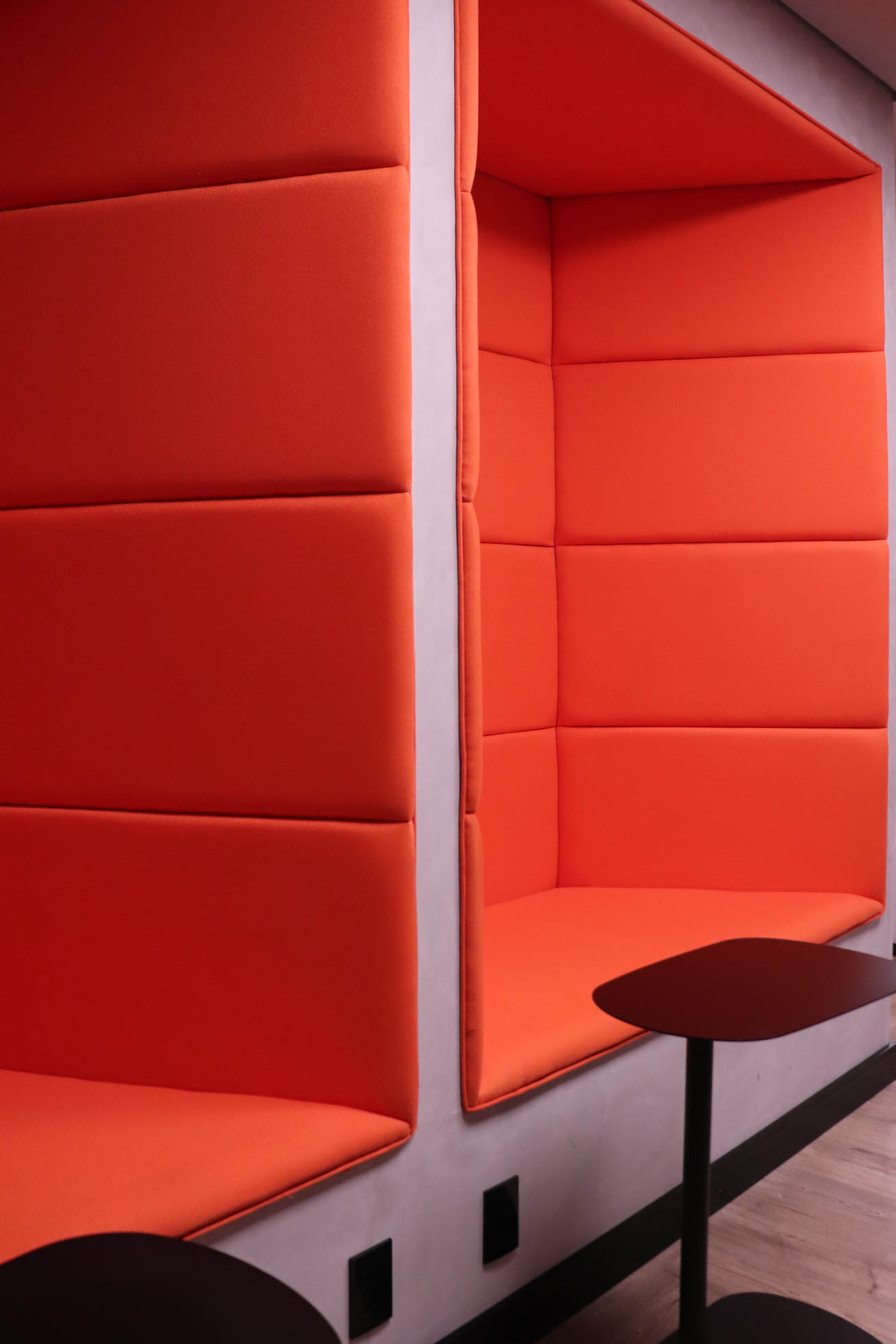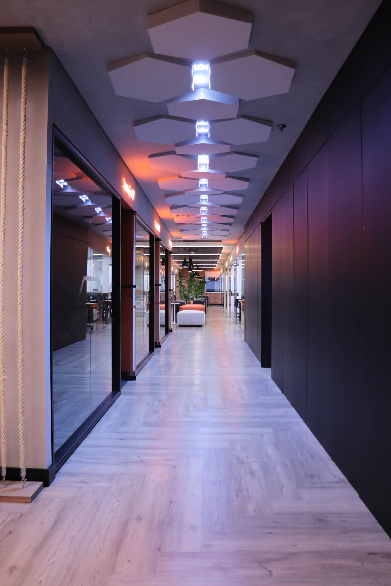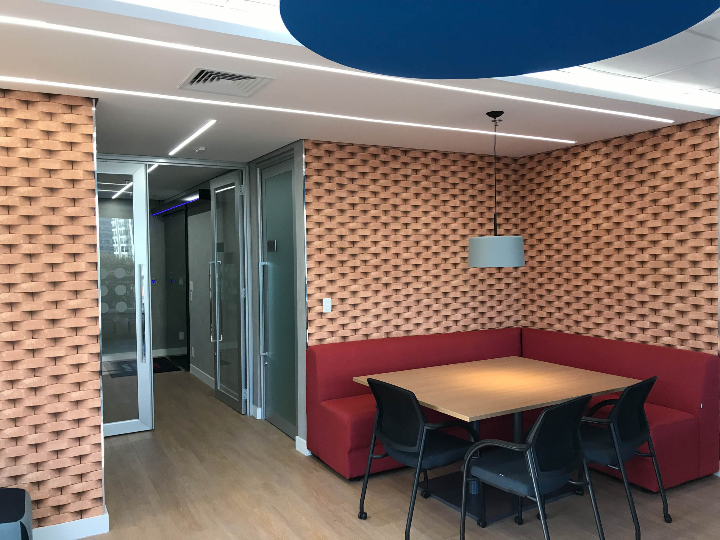 Criativa e espontânea por natureza, agrega valor aos ambientes corporativos através de formas, cores e texturas, promovendo uma experiência única em arquitetura corporativa.